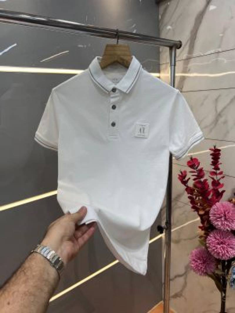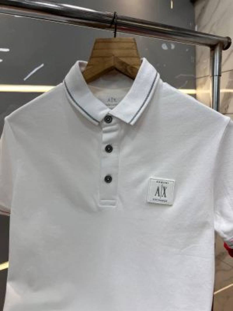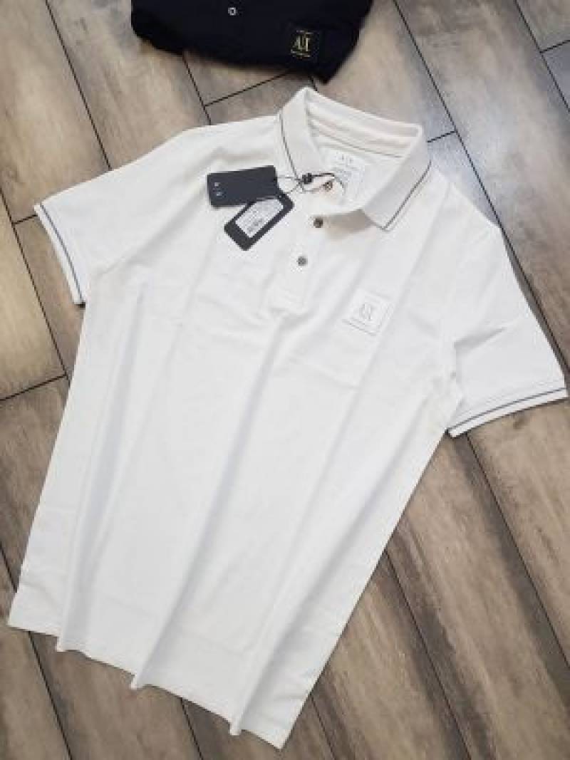 Arman i Exchange White Premium Imported 240 GSM Interlock Cotton Lycra Fabric Polo T Shirt with Patch Logo 715
