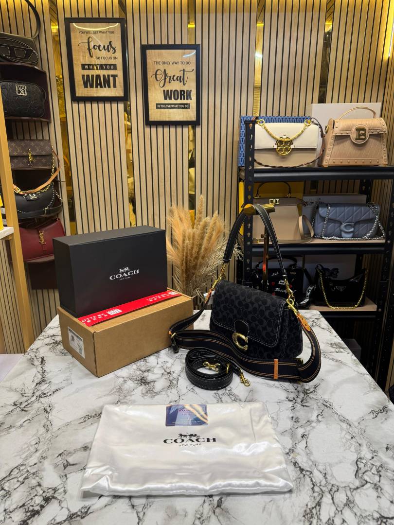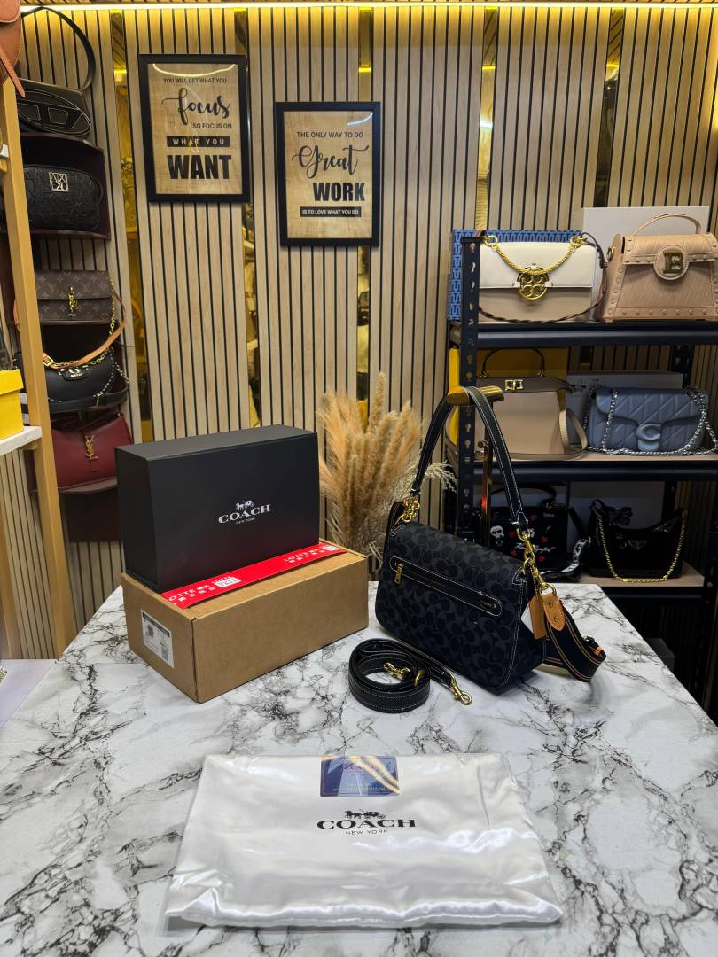 Coac_h Tabby Signature Canvas Jacquard Shoulder Bag With Double Og Box And Dust Bag (Black-C355)