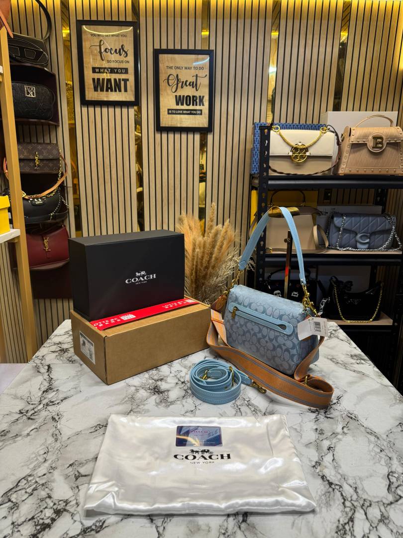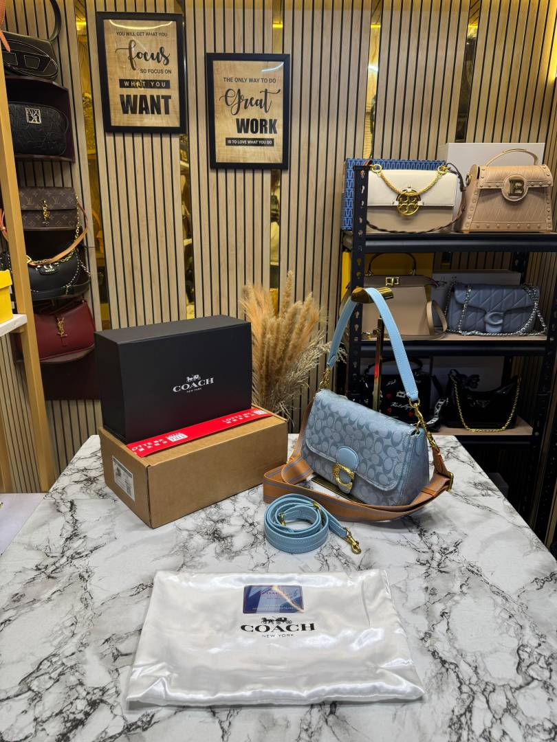 Coac_h Tabby Signature Canvas Jacquard Shoulder Bag With Double Og Box And Dust Bag (Blue-C355)