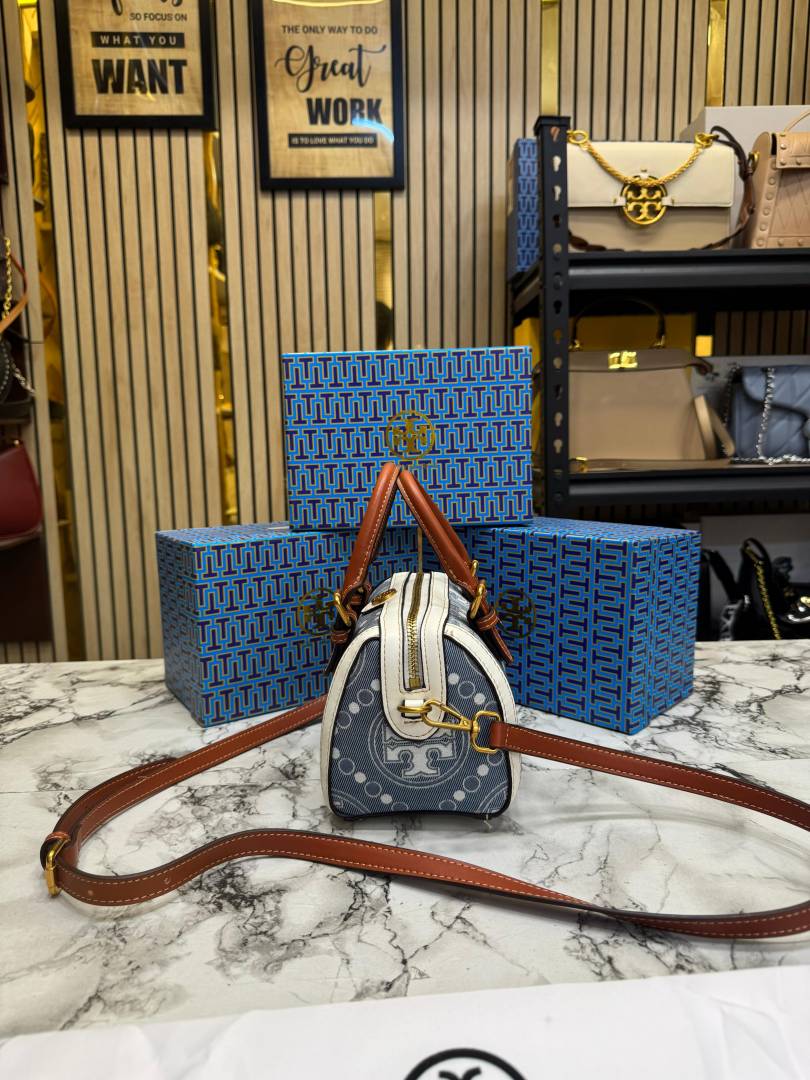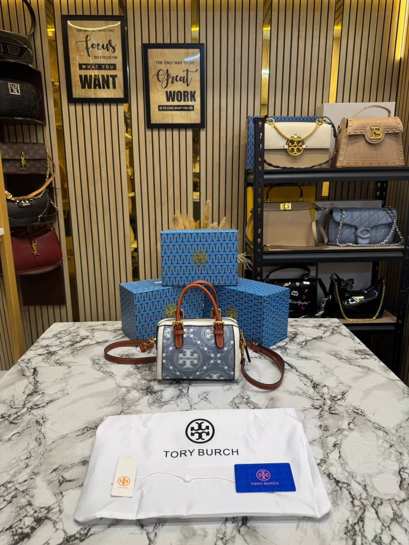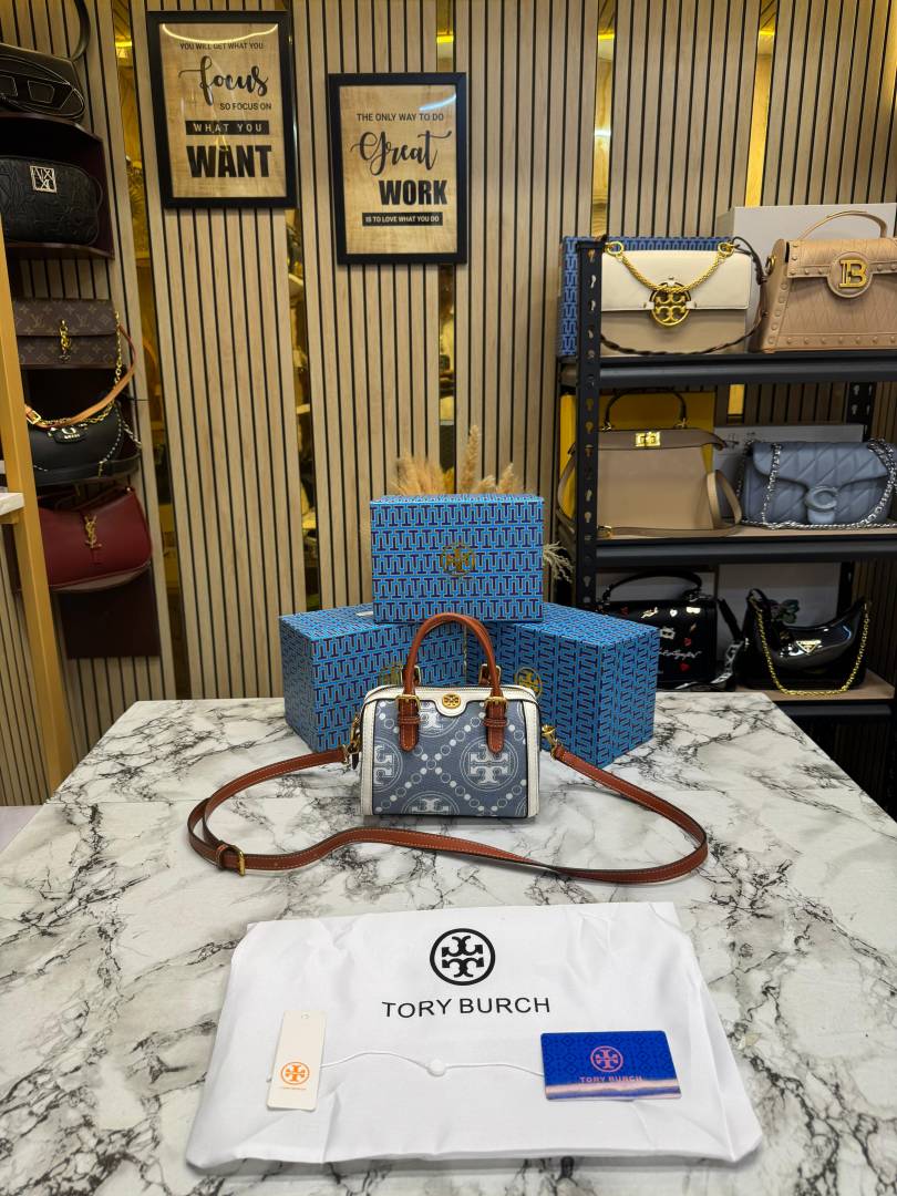 Tory_Burch T Monogram Petite Barrel Bag With Box And Dust Bag (T928-Denim)